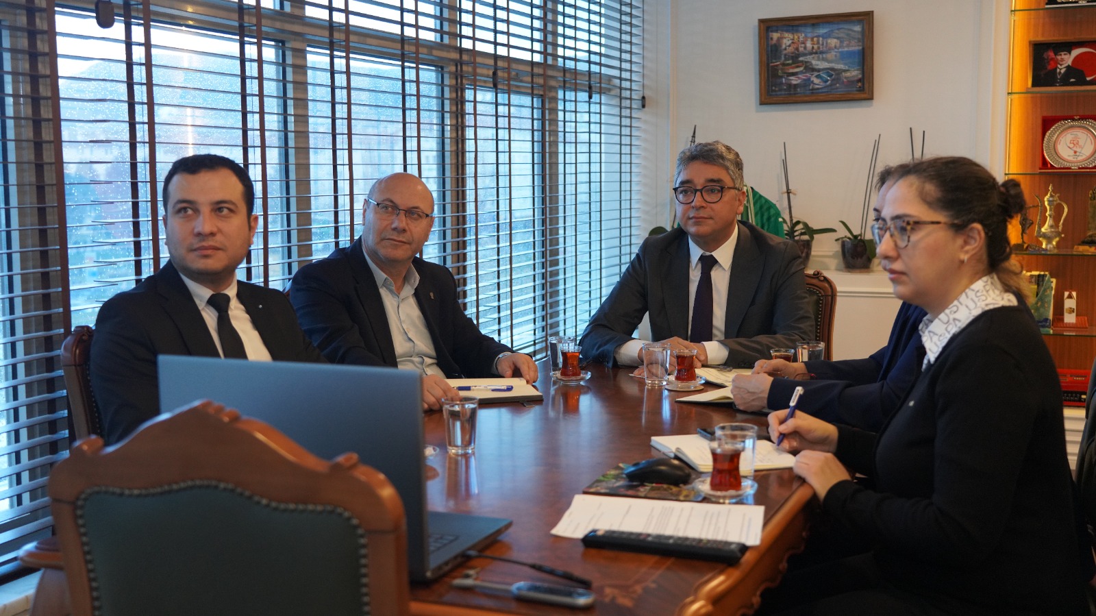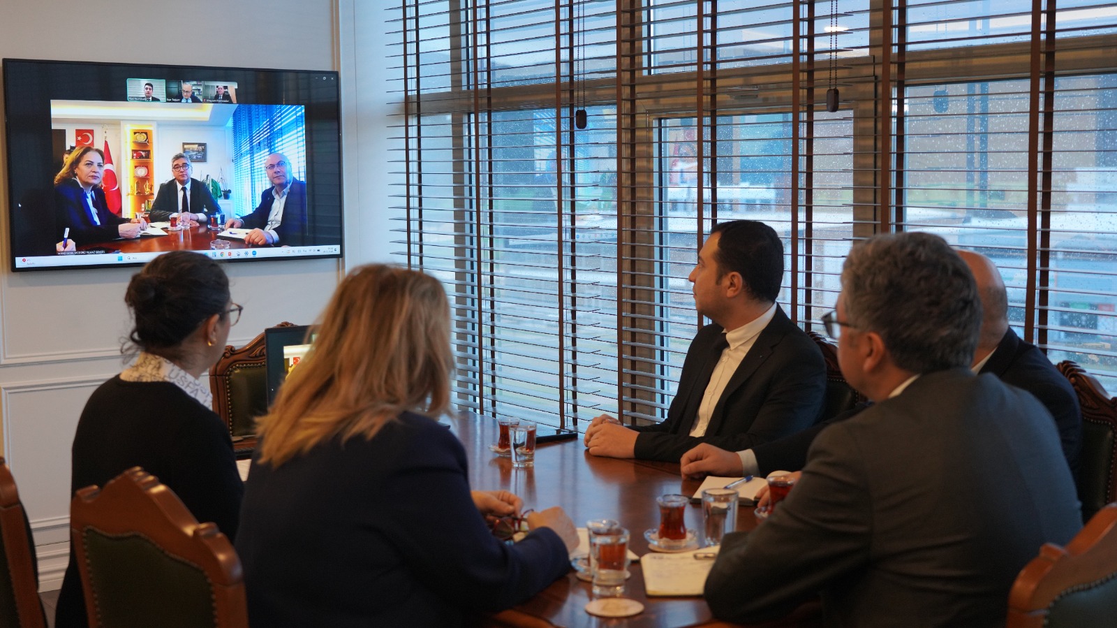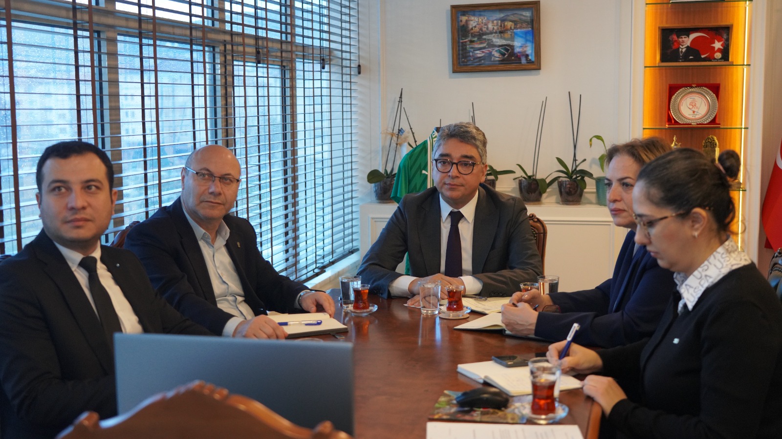 MUSKİ Genel Müdürü Yılmaz Şengül’ün başkanlığında yapılan toplantıya; Genel Müdür Yardımcıları Meltem Sibel Tekeoğlu Kurtuluş ve Ahmet Demirel’in yanı sıra ilgili daire başkanları ve şube müdürleri katıldı. Azerbaycan Devlet Su Kaynakları Ajansı’nı temsilen ise Birinci Başkan Vekili Khayyam MAMEDOV, Başkanı Danışmanı Asad SHİRİNOV, Strateji, Uluslararası İşbirliği ve Bilim Dairesi Başkanı Riad AKHUNDZADA ve Büyükşehirler Birleşik Su Hizmetleri Yönetim Kurulu Başkan Yardımcısı Ilgar TAGHİYEV toplantıda yer aldı. Görüşmede, Türkiye ile Azerbaycan arasındaki kardeşlik bağlarının su yönetimi alanındaki iş birliklerine de yansıdığı vurgulanırken, MUSKİ’nin içme suyu kayıp-kaçaklarının azaltılmasına yönelik yürüttüğü çalışmalar detaylı şekilde paylaşıldı. Bu kapsamda, fiziki su kayıplarının takibi için oluşturulan kurumsal yapılanma, veri izleme altyapısı ve basınç yönetimi uygulamaları hakkında bilgi verildi.